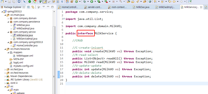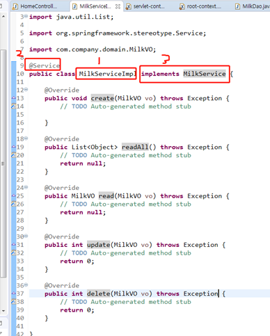 그 다음, service패키지에 똑같이 interface 및 implement 클래스를 구현한다.