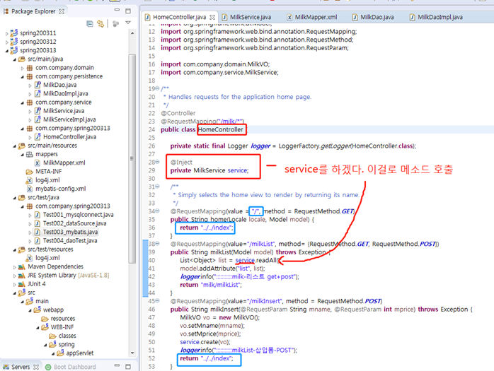 그 다음, 컨트롤러에서 service를 주입하여 사용하면 된다.