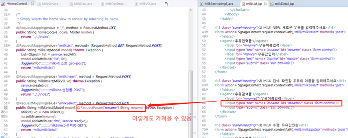 2) @RequestParam("name") 자료형 name명