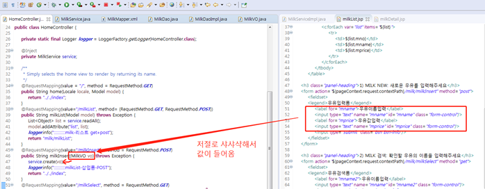 1) jsp에서 name값과 VO 인스턴스명이 동일하면 저절로 값이 맵핑이 된다.
