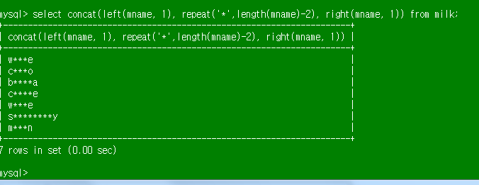 concat은 문자열 연결해주는 함수고, repeat은 무엇을 얼마만큼 반복해서 출력해주는 함수이다.