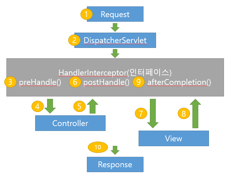 여기에서 preHandle()이 가장 많이 쓰인다. 컨트롤러가 작동하기 전이기 때문.