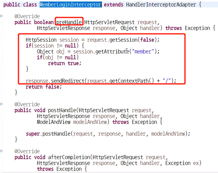public class MemberLoginInterceptor extends HandlerInterceptorAdapter