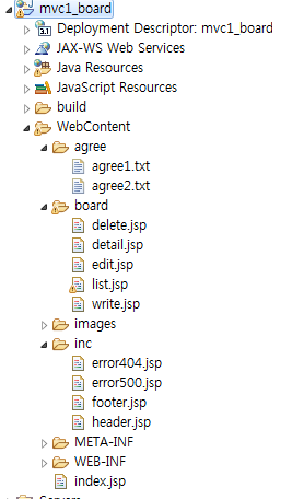 그리고 예전에는 WebContent에 파일을 다 넣어왔는데, 오늘은 folder를 만들어서 폴더별로 정리해놓았다.