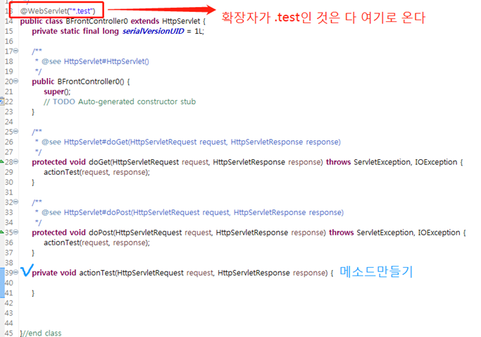 경로를 처리해 줄 때 확장자로 확인하고, (@WebServlet("*.test"))