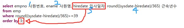 order by 뒤에다가 컬럼에 해당하는 숫자를 넣어주면 오라클이 알아서 그 해당 컬럼을 찾아서 정렬해준다. (대단...)